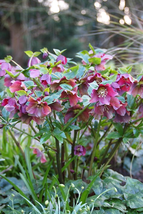 Hellebores (there’s a huge range of colours, but they do like a humus rich soil)