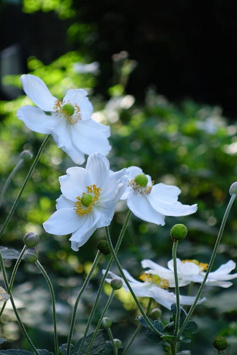 Anemone japonica ‘Honorine Jobert’ (or any of the Japanese anemones, though beware they can be thuggish in the garden)